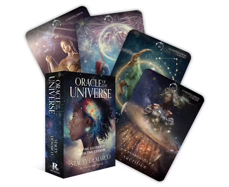 This oracle captures the spiritual wisdom from the known universe: the individual energies, twinkling stars, greatest fiery suns, mysterious black holes, spinning galaxies, shining constellations, and all the planets great and small.