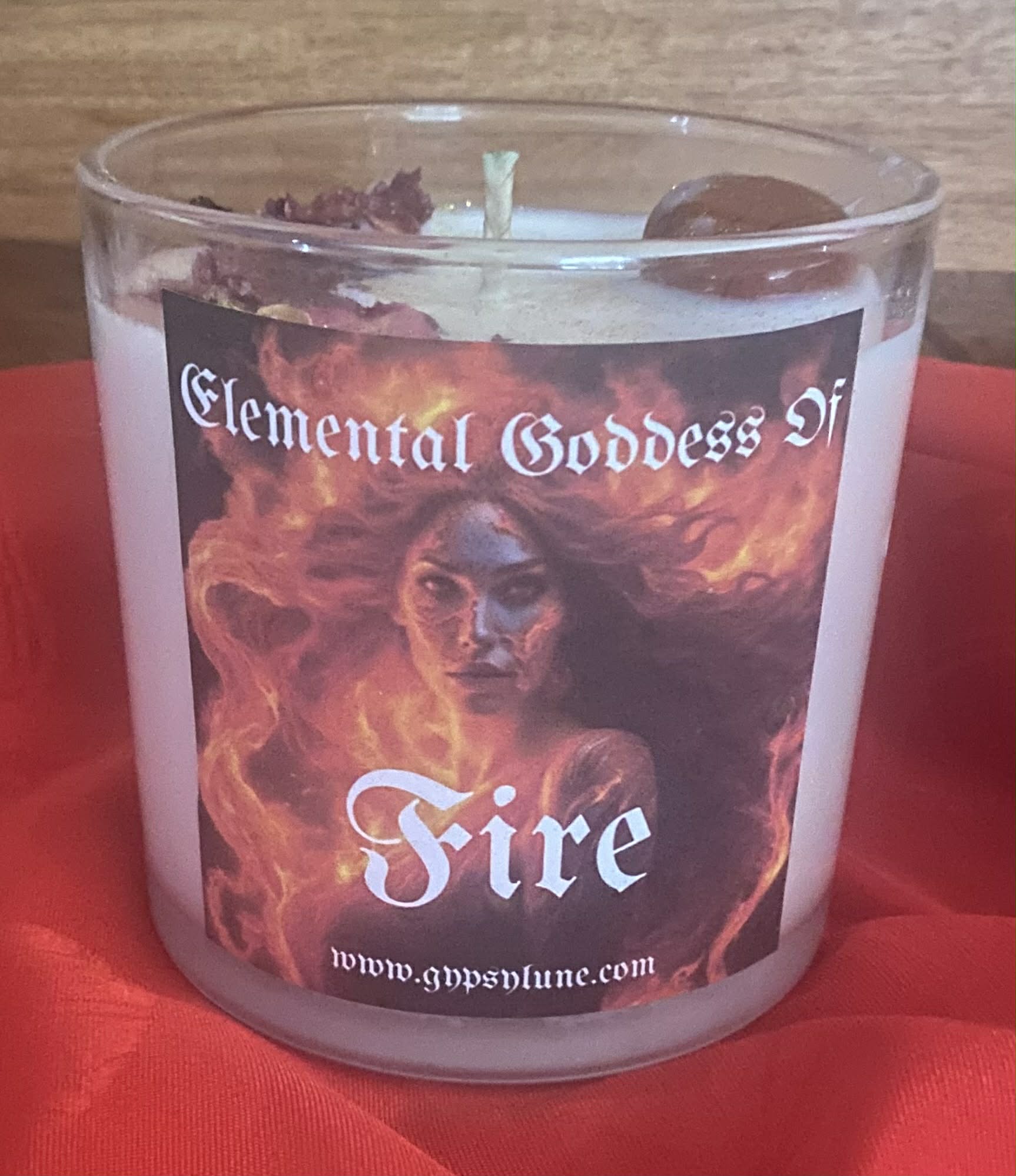 Crystal used: Red Jasper This crystal is naturally associated with the fire element due to its rich colour and energetic properties, making it an excellent tool to use when working with the Elemental Goddess of Fire. Its energies can help channel vitality, passion, and creative drive.