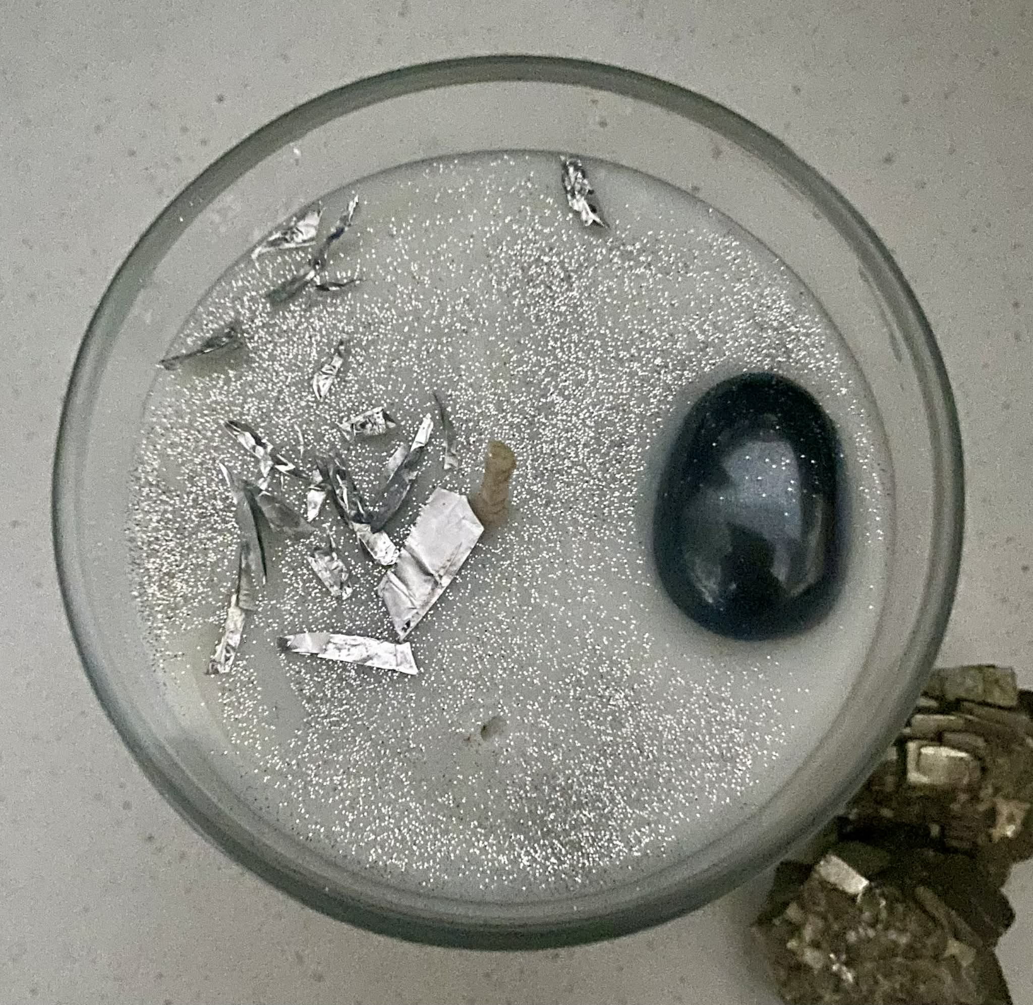Crystal used Hematite: A powerful crystal associated with the Metal element in feng shui and Traditional Chinese Medicine, valued for its ability to enhance mental clarity, focus, and productivity.