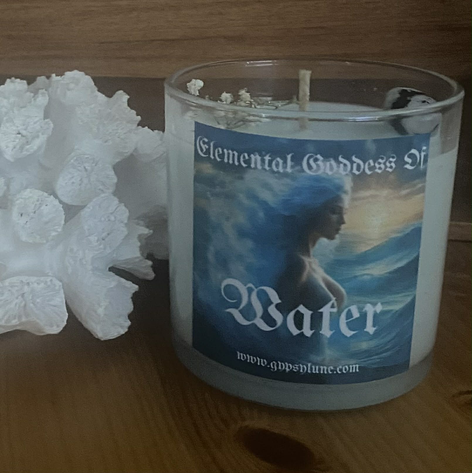 Oils used: A blend of Lemon, Lime, Mandarin, Apple, Bergamot, Violet, Musk and Sea Salt. These oils help with self-compassion, creativity, and releasing past traumas, supporting the Water element's themes of love, intuition, and purification.